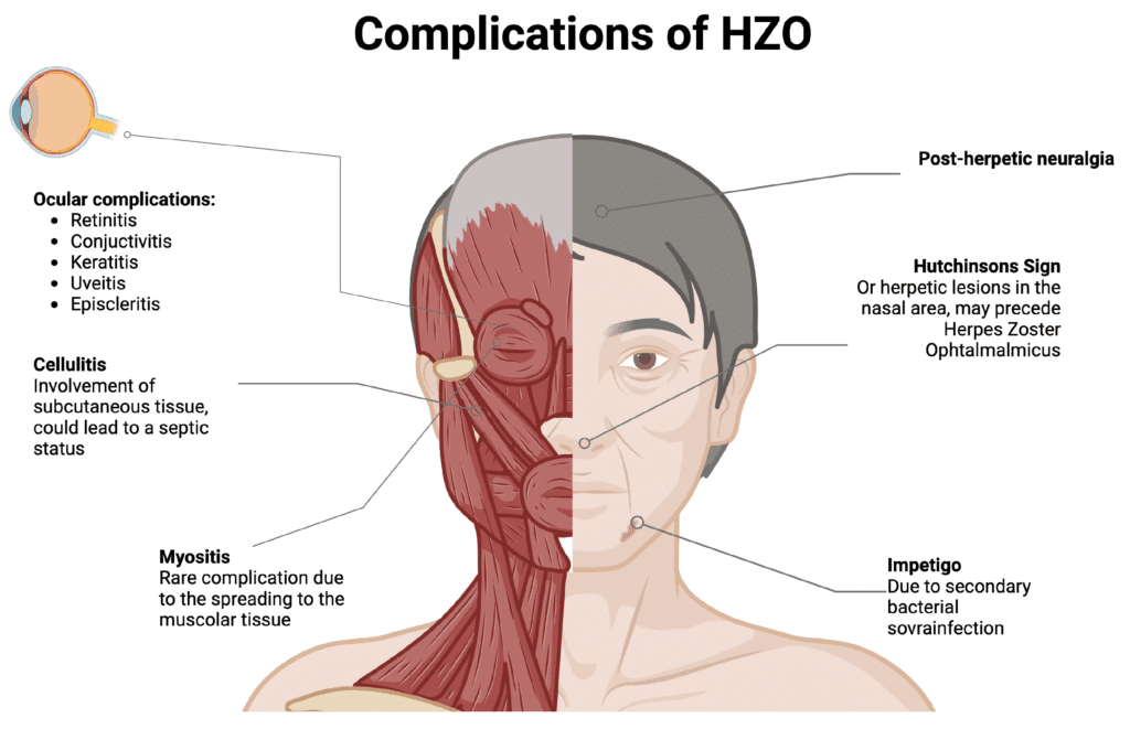 顔に帯状疱疹ができた際に、目の症状を伴うものを眼部帯状ヘルペス(Herpes Zoster Ophthalmicus, HZO) と呼びます。