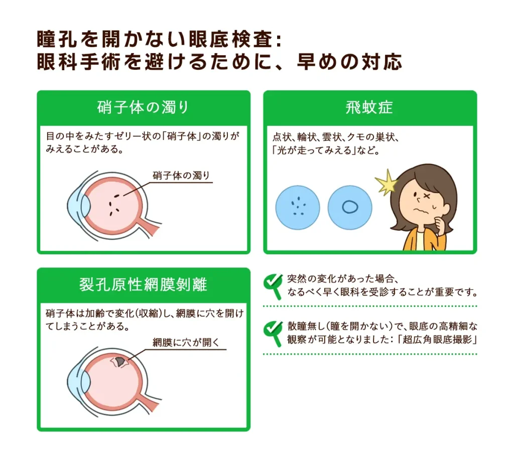 ✔ 突然の変化があった場合、なるべく早く眼科を受診することが重要です。